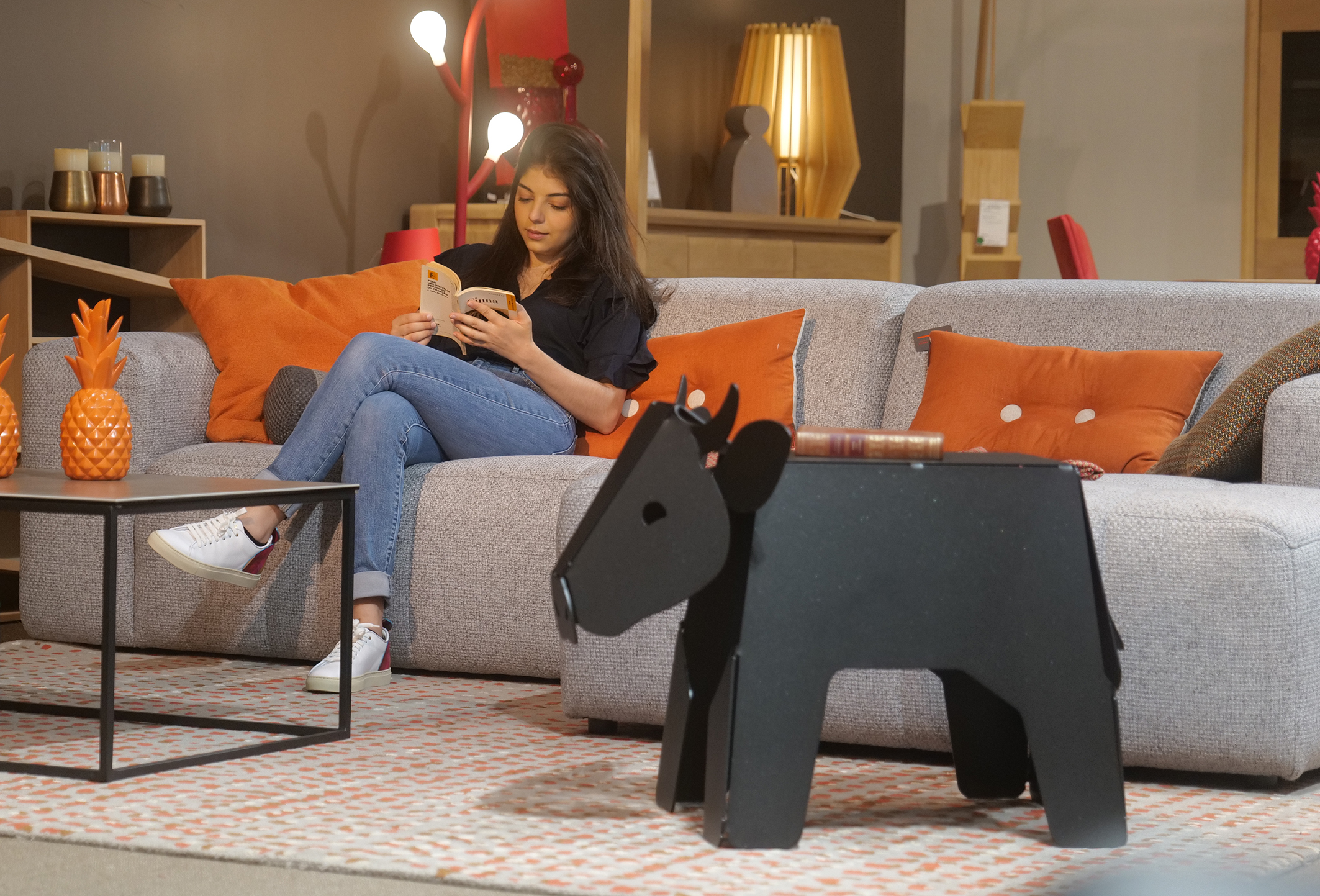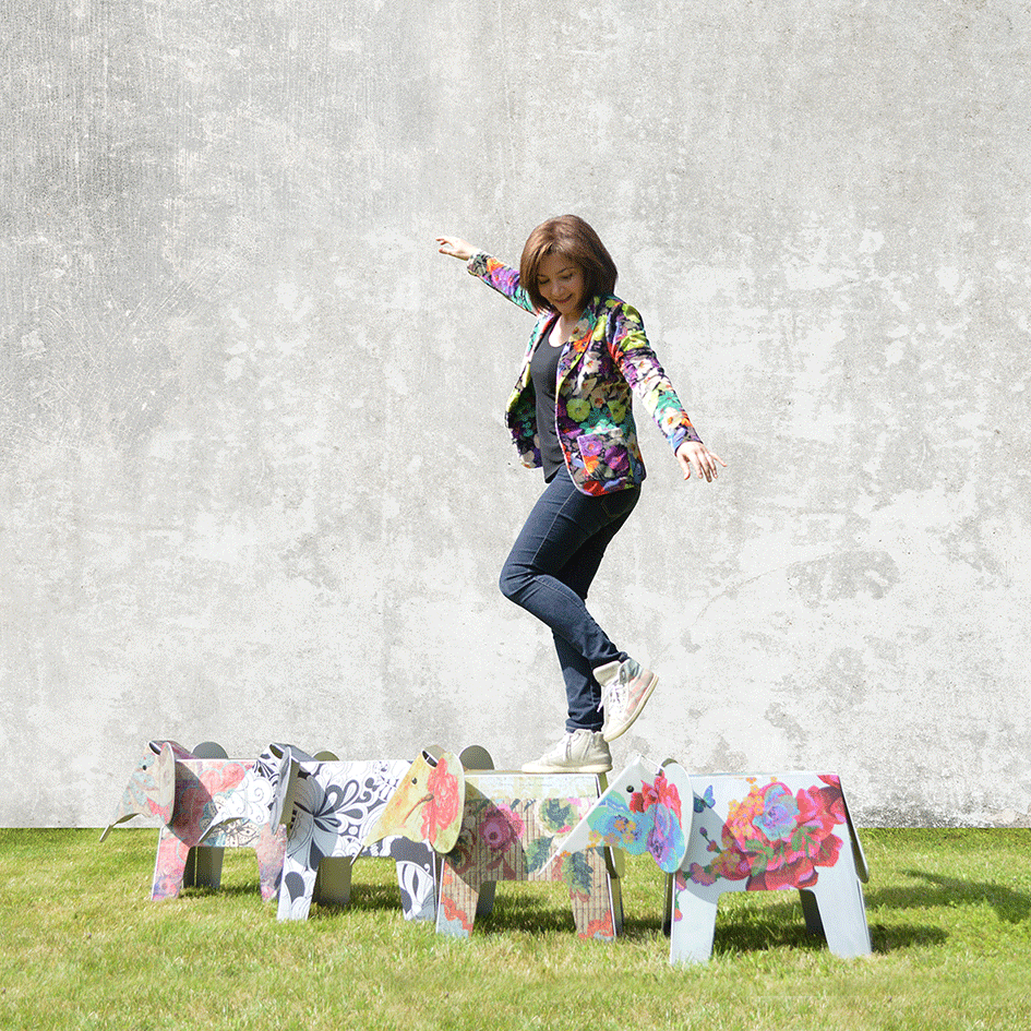 Christine imagine un bestiaire élégant, composé d’éléphants, de vaches, de chiens et de lions, une jardinière en forme de matriochka, une table d’appoint inspirée par la grenade, ou encore un portemanteau « arbre » : autant d’objets singuliers, utiles ou purement décoratifs, qui ont une histoire et des valeurs.