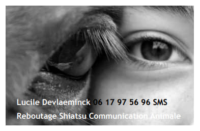 Lucile est aussi en relation avec des vétérinaires et professionnels de la santé & du bien-être de l’animal (ostéopathe, masseur kiné, naturopathe, toiletteurs, éducateurs, moniteurs, instructeurs…).