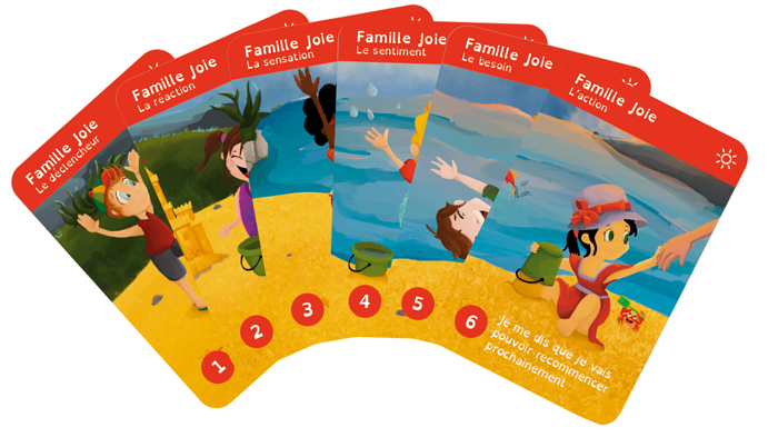 Dans ce contexte, Emotions Games lance le Jeu des 7 familles des émotions. Il est composé de cartes qui représentent le cycle de l’émotion :