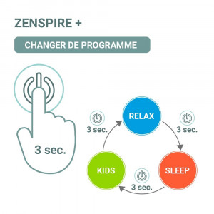 2021 voit le jour du ZENSPIRE + qui regroupe en un seul dispositif 3 fonctions : Relax, Sleep et le très attendu programme Kids qui permet aux enfants de retrouver immédiatement le calme et la détente.