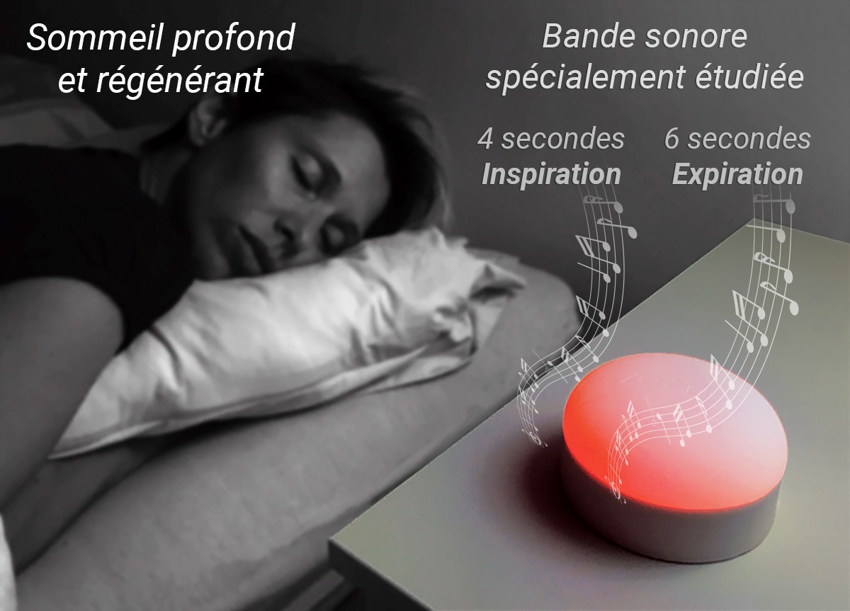 Le ZENSPIRE peut accompagner chaque personne progressivement dans le sommeil grâce à une bande son incluant l’onde delta, parfaitement adaptée à l’endormissement (basses fréquences situées entre 0.5 et 4 Hz).