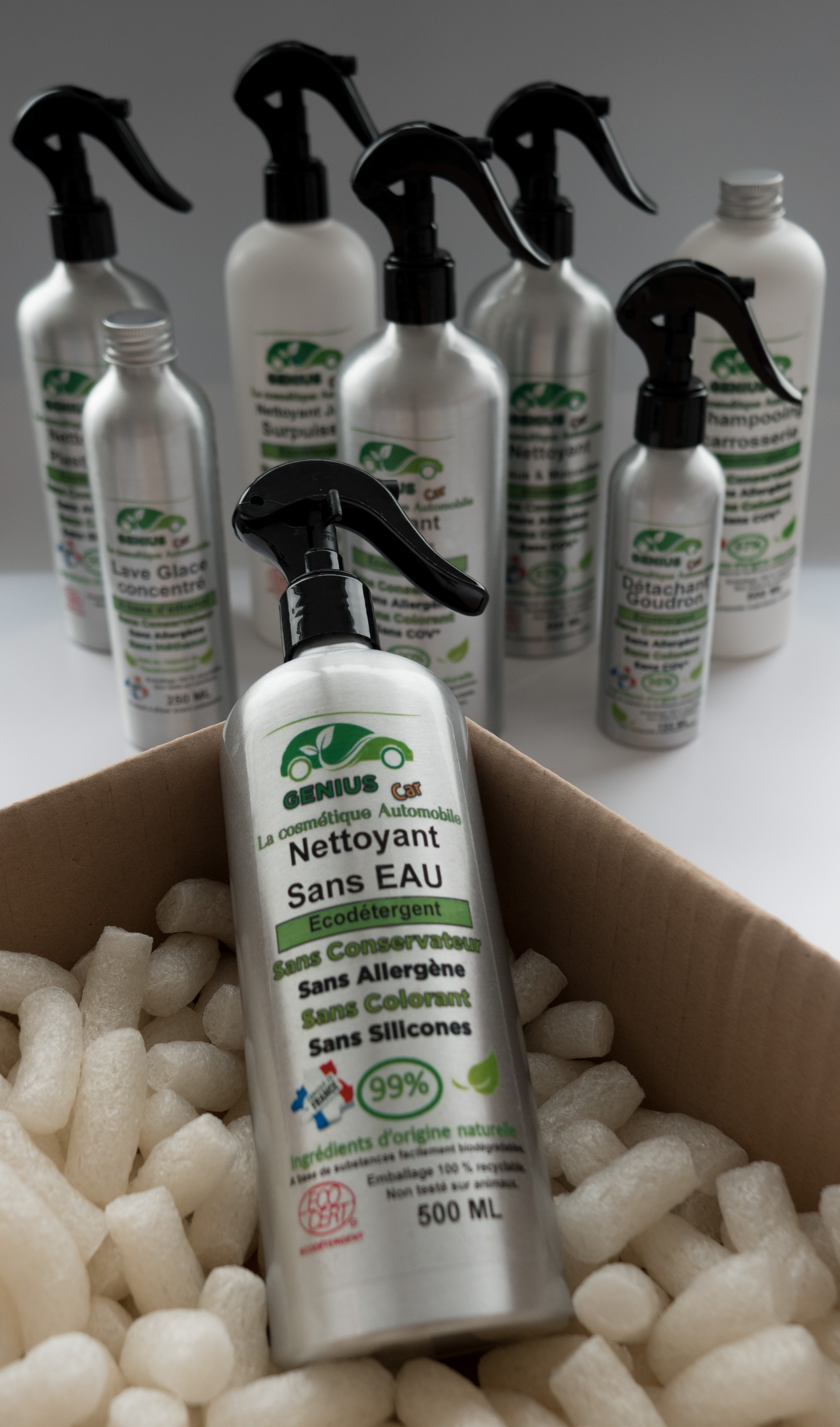 - Des emballages propres. Les emballages des produits Genius Car sont fabriqués avec des matières facilement biodégradables et 100 % recyclables. Les informations d’utilisation sont présentées de manière simple, détaillée, et sans jargon technique.