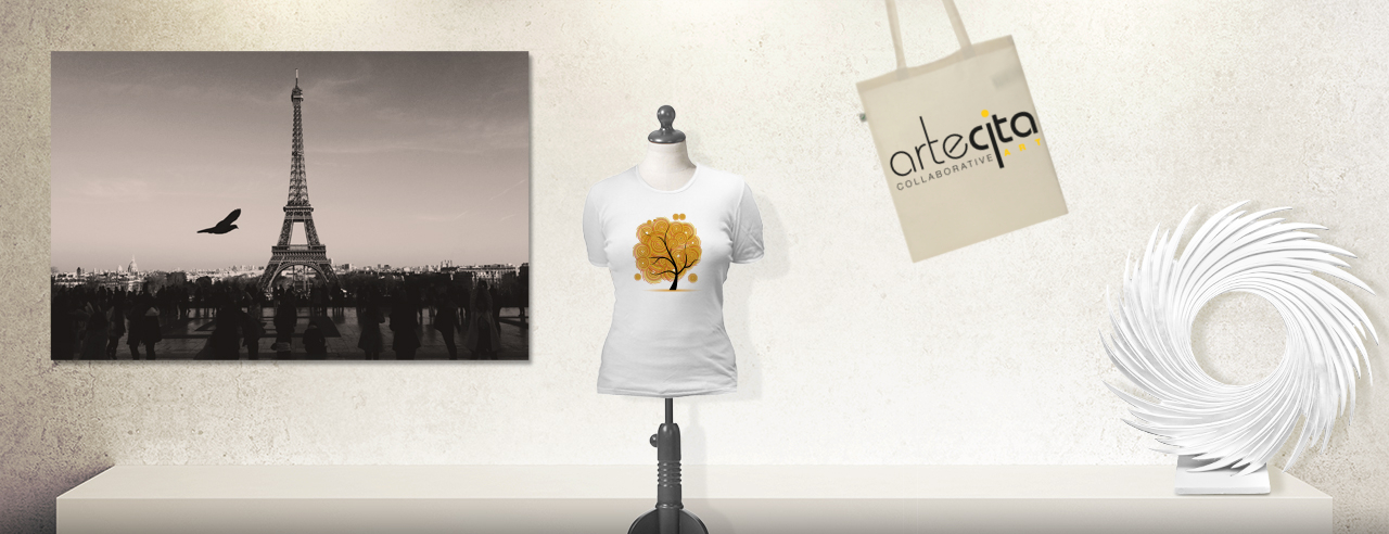 3 – ArteCita réalise les oeuvres sur de nombreux supports éco-responsables : toutes les créations sont proposées à la vente, sur les plus beaux supports, respectueux de l’environnement : contrecollé sur aluminium dibond sous verre acrylique ou non, caisse américaine, impression sur aluminum brossé, tee-shirt ou pull en coton bio, tote bag bio, sculptures imprimées en 3D…