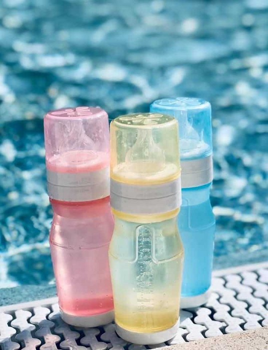 - Le bec verseur présent sur la tour de réserves Natidiv permet au biberon d’évoluer en gourde pour le goûter ou le sport. Celle-ci peut être utilisée pour les infusions d’eau fruitée grâce à sa bague filtre.