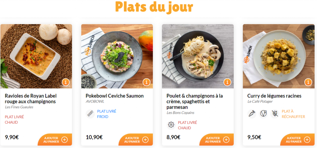 Chaque jour, HopLunch livre en entreprise des plats frais et de qualité. La livraison est gratuite et sans minimum de commande ; les commandes se font avant 10h30 du matin sur le site internet d’HopLunch, puisque les plats sont préparés le matin même.