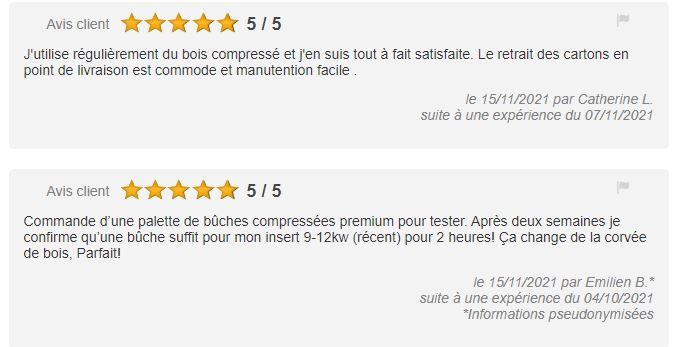 La garantie de vivre une expérience positive. Aujourd’hui, le marché du bois de chauffage en France est particulièrement opaque. À tel point qu’on estime que 70 % de l’activité est réalisée dans des conditions illégales… De plus, entre les sites internet frauduleux et les petites annonces bidons, nombre de Français se sont déjà fait piéger. À contre-courant de ces pratiques, Brazeco s’impose comme un fournisseur transparent et fiable, qui offre une qualité de produits et de services irréprochables. Il est d’ailleurs noté 9,6/10 sur Avis Vérifiés à partir de plus de 800 avis. Brazeco, c’est aussi la simplicité : la bûche densifiée est livrable à domicile ou à retirer dans l’un de ses 100 points de retrait présent partout en France. avis clients La suppression des surcoûts. Plus il y a d’intermédiaires, plus le bois coûte cher… Brazeco a donc décidé de démocratiser l’accès à cette énergie renouvelable en s’affranchissant des circuits traditionnels de la grande distribution. Le bois de chauffage est vendu directement du producteur au consommateur, ce qui fait considérablement baisser l’impact carbone et la facture. Mieux : l’entreprise simplifie les échanges entre ses clients d’une même zone géographique. Ils peuvent ainsi se regrouper pour commander ensemble et donc économiser sur le coût de la livraison.