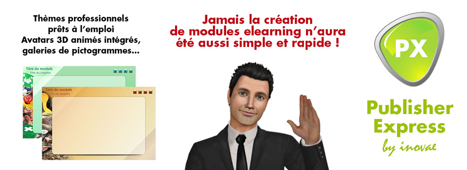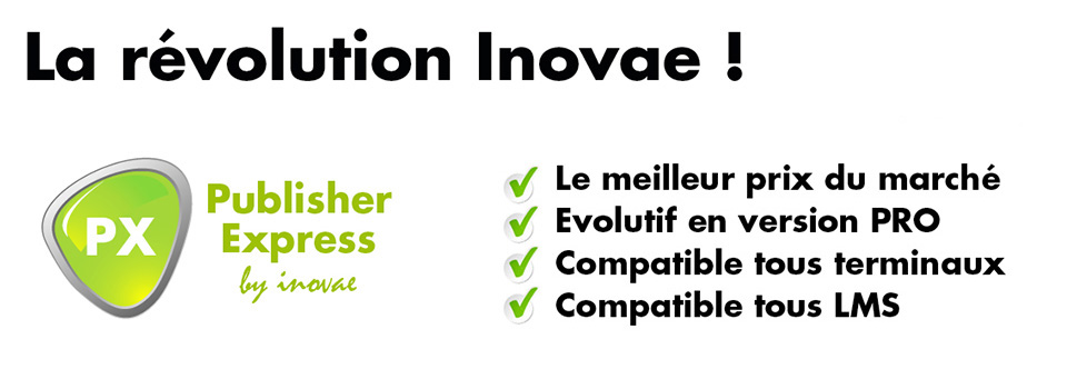 Grâce à Inovae et son nouveau logiciel e-learning, Publisher Express 2015, chacun peut désormais créer rapidement et simplement des modules e-learning de qualité professionnelle et compatibles avec l’ensemble des navigateurs et des plate-formes LMS (Learning Management System).