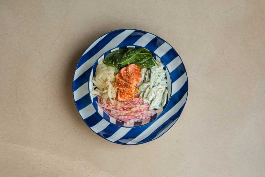 La carte comprend des recettes pour tous les goûts. Les Samoussas feta enrobé de miel font des adeptes. Le Poké Paros Pitha, avec son saumon snacké, la fraîcheur du concombre, de la betterave chioggia et des pousses d’épinard est le préféré des habitués.