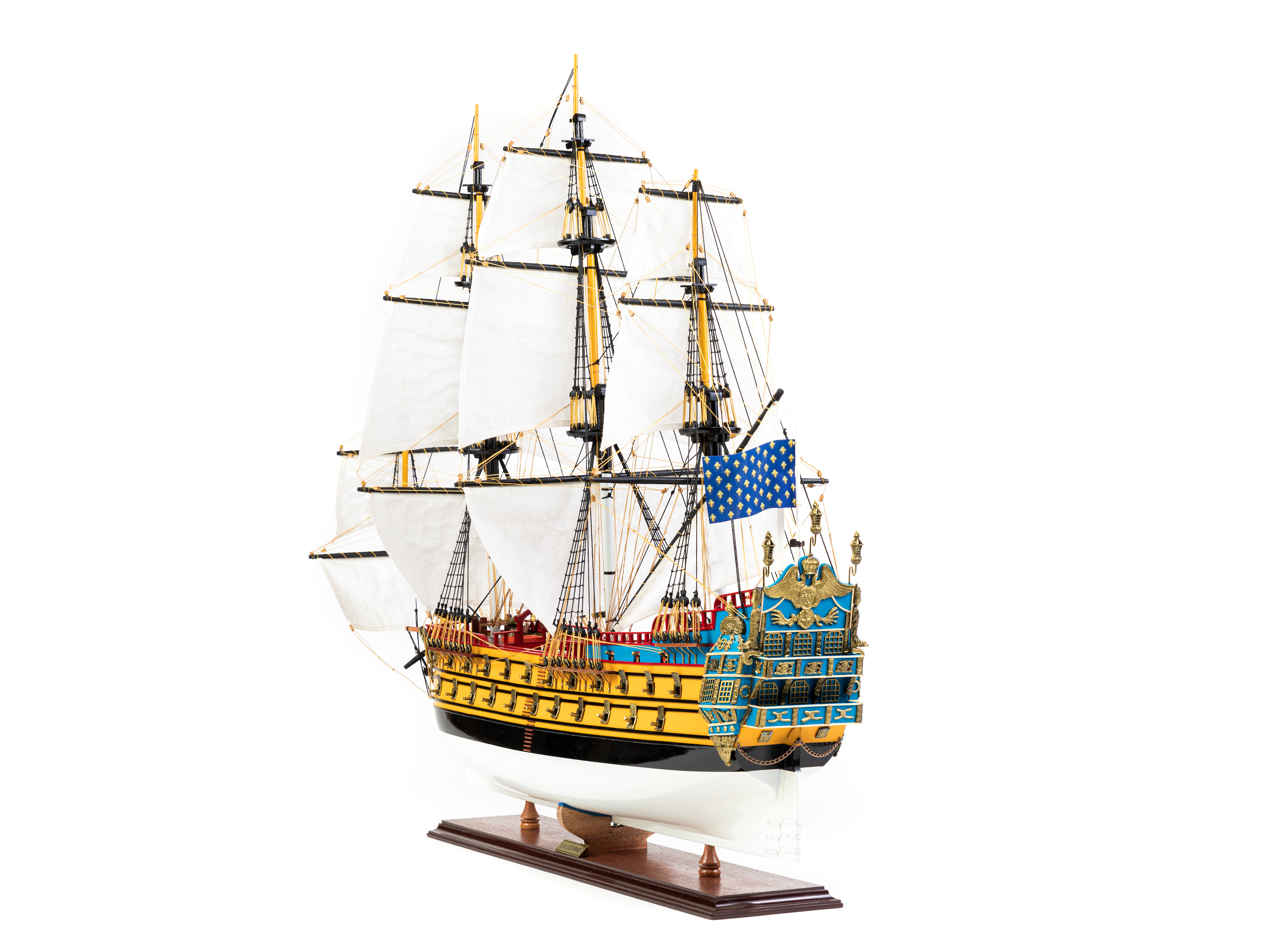 Dans cette catégorie de navires d’exception, on trouve par exemple des pièces de collection réalisées par l’atelier du musée de la Marine dans les années 1960, une maquette de l’Endeavour Class J conçue par un maquettiste de marine français en 1990, en série limitée, et des pièces uniques de la goélette Achilles, du vaisseau de guerre La Couronne ou encore du fameux galion corsaire Golden Hind.