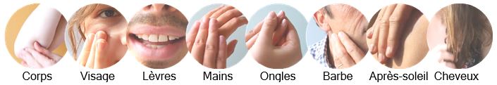 - Huile de tournesol, huile de coco, beurres de karité : pour une peau douce