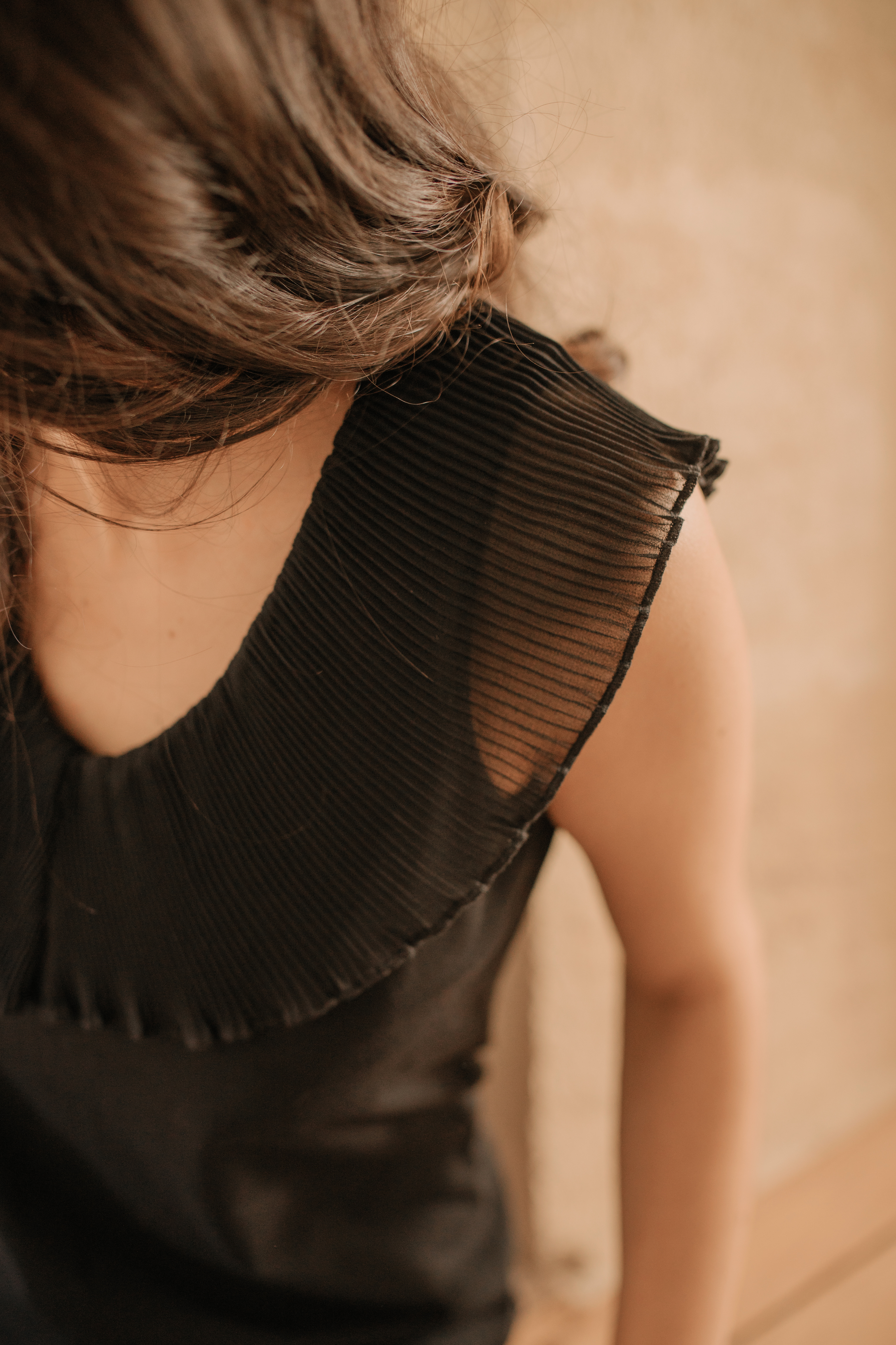 Avec son joli plissé, le haut Isis a une allure sophistiquée et résolument élégante. Doublé, il s’ouvre par bouton-pression. Il est principalement composé de coton biologique.