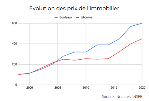 Libourne profite de la présence de Bordeaux. Celle-ci lui procure une demande locative importante en raison de la présence de nombreux bassins d’emploi à proximité. Le quartier Centre-ville – Bastide – Gare est en pleine évolution. Le quartier Montaudon est recherché pour son calme et sa tranquillité. Le prix moyen au mètre carré est de 2 200 € à Libourne.