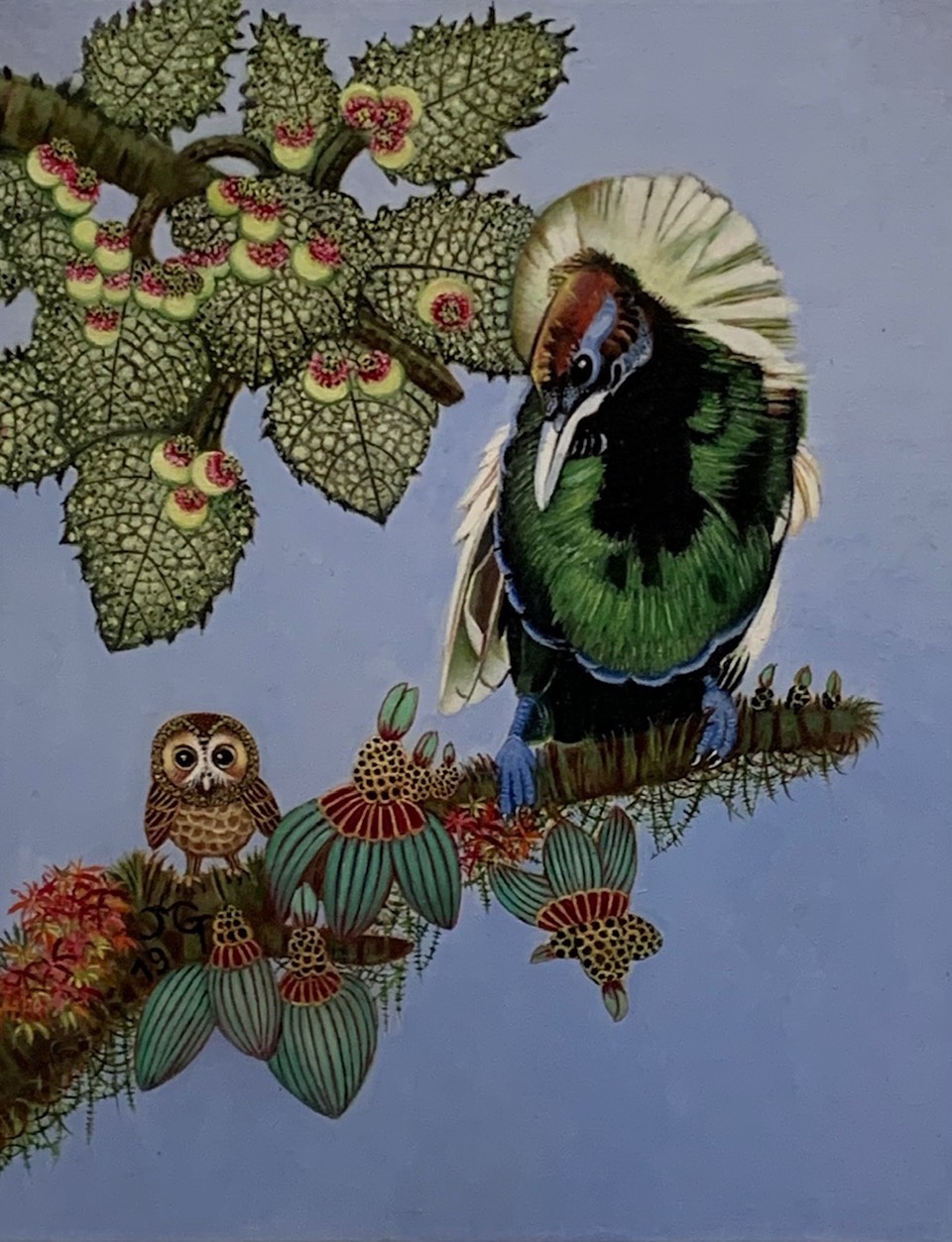 Avec son imagination prodigieuse et fantasque, Monique Gourgaud créé un monde merveilleux, un Eden enchanteur où faune et flore animent un espace intemporel.