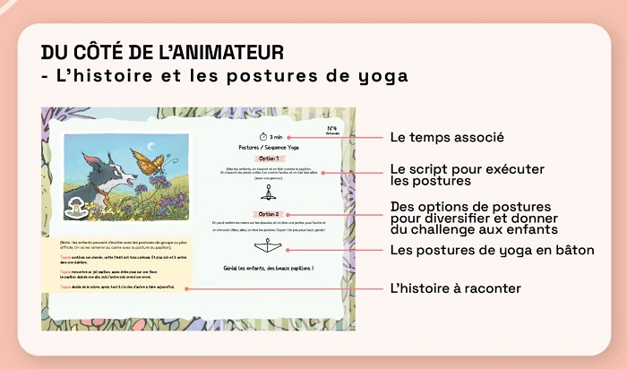 Mais comment réussir à animer une séance quand on n’est pas soi-même un yogi chevronné ? Comment rendre la pratique ludique et pédagogique, même pour les plus petits ?