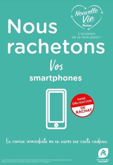 Grâce à ce service, les clients ont désormais l’opportunité de revendre leurs anciens produits high tech même cassés au meilleur prix et de se voir créditer le montant de la reprise sur une carte cadeau Auchan valable dans tous les rayons du magasin ou de bénéficier d’un avoir sur un produit du rayon concerné.