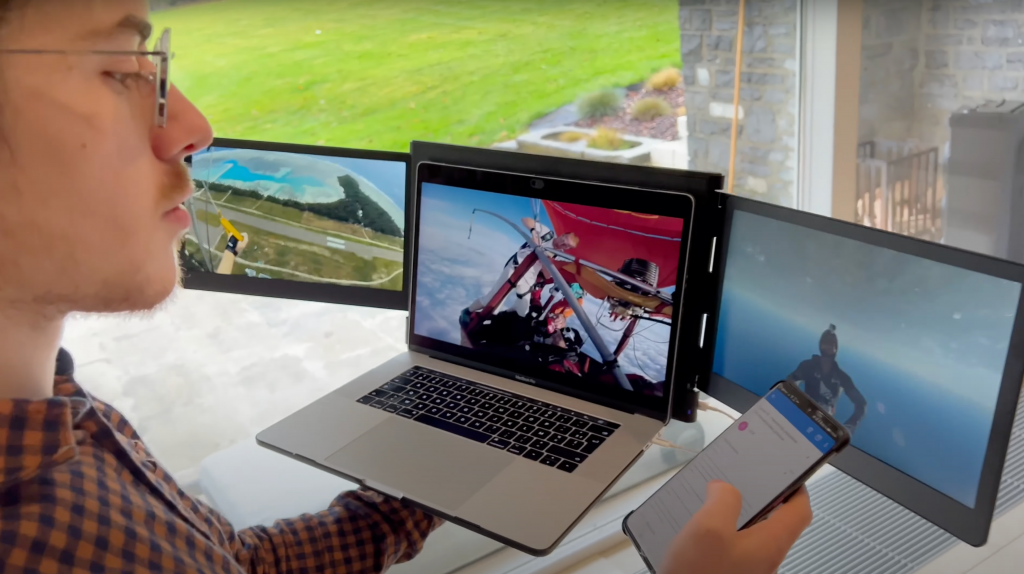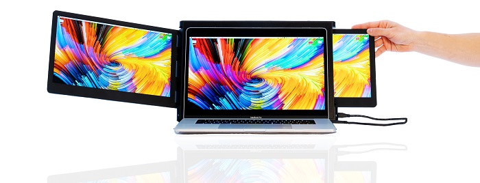 Le concept est d’une efficacité redoutable : 2 écrans coulissants supplémentaires de moins de 6mm qui s’adaptent directement à tout ordinateur portable (Mac/Windows/Android) sur un seul câble.