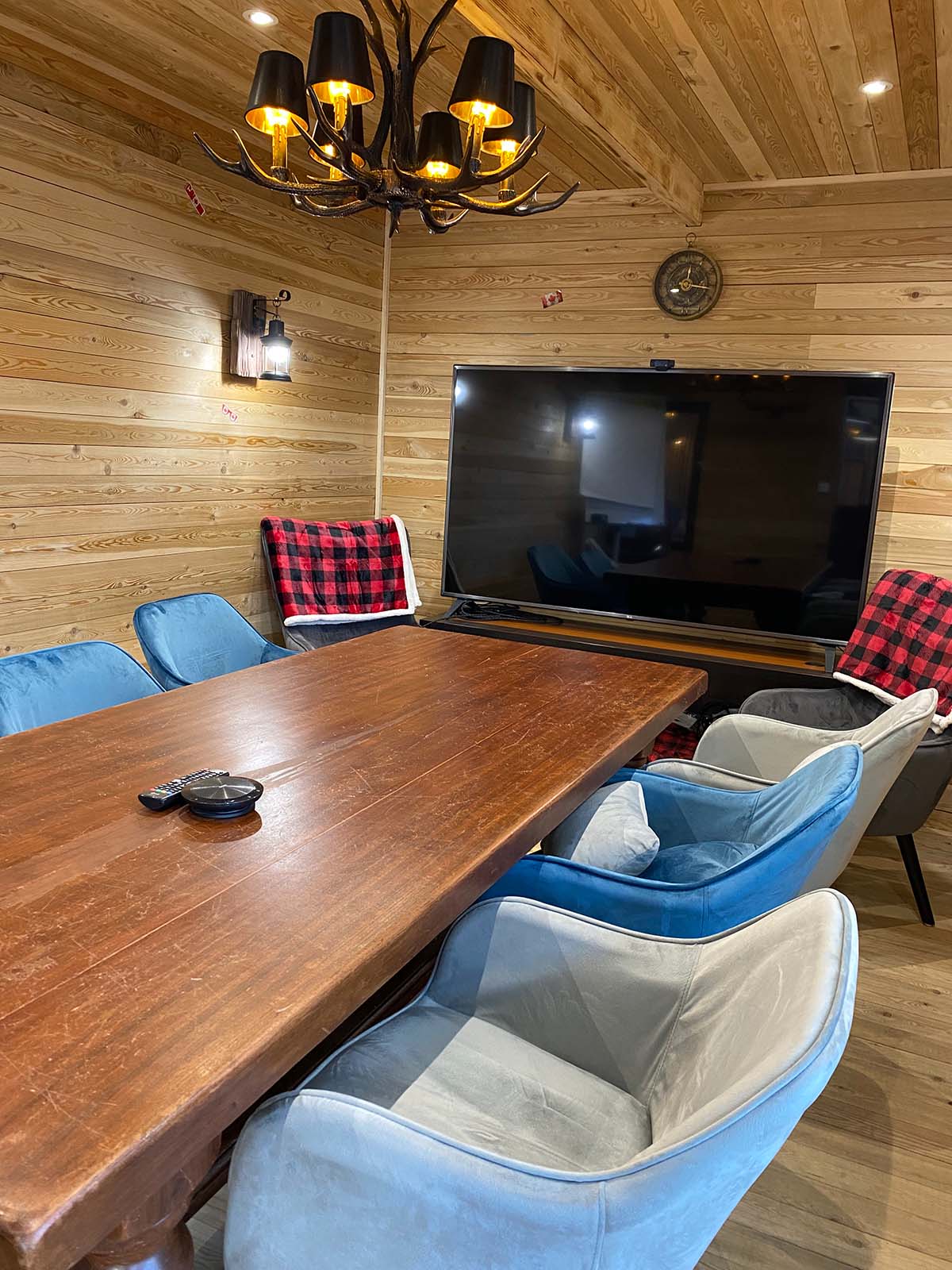 Une immersion totale dans le pays chaleureux du Canada : boiserie, cheminée, plaid, tête de cerf en décoration… La salle de 15 m2 est idéale pour une réunion de 6 personnes. Elle dispose, en plus des éléments classiques, d’une télévision de 165 cm servant de support de réunion. Cette salle est accessible à partir de 35 € HT seulement.