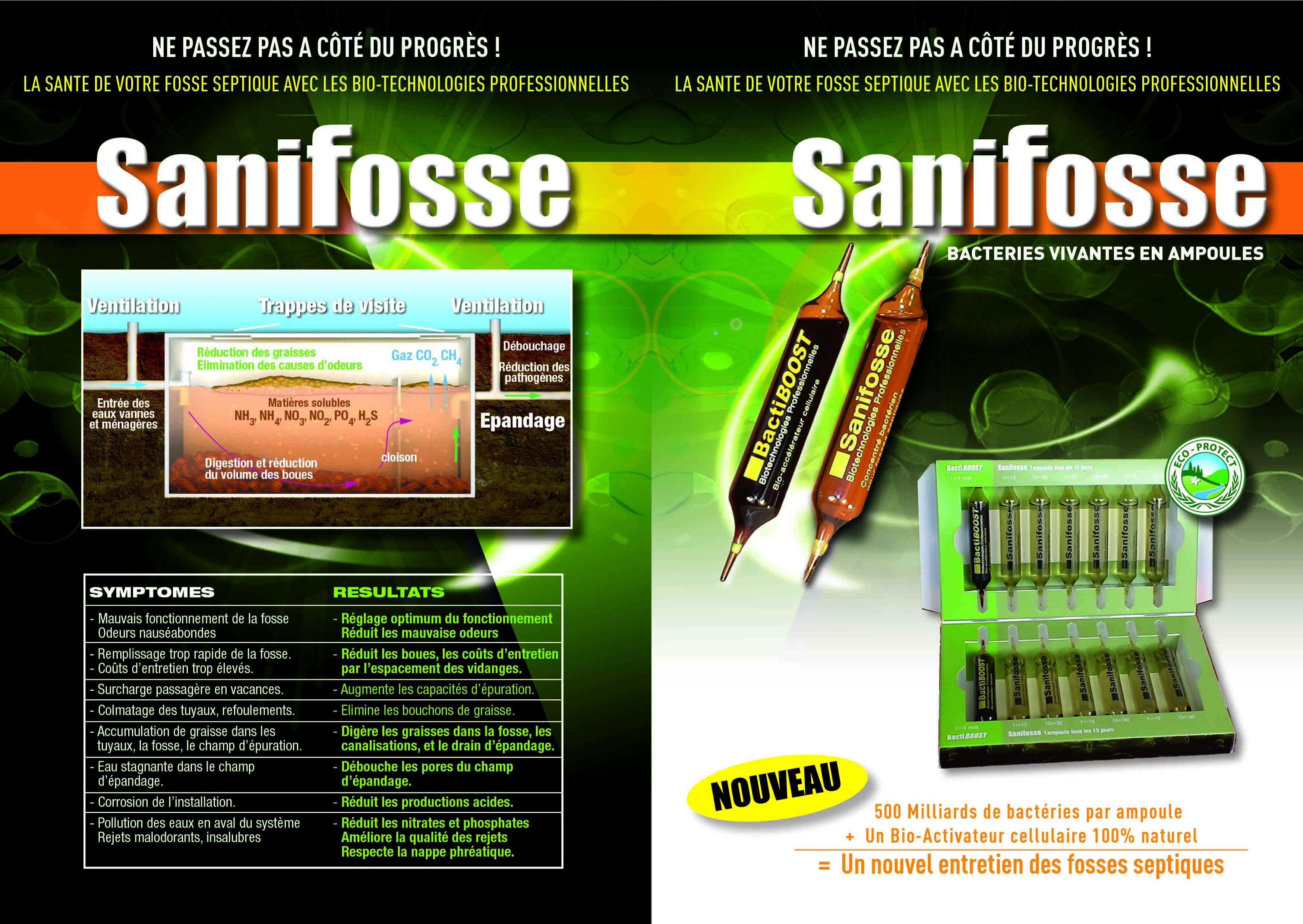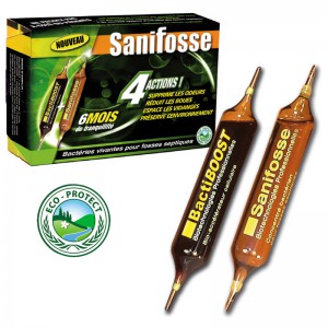 Grâce à son expérience de plus de 20 ans en produits écologiques pour les maisons et jardins, la société Bioxem a mis au point, en collaboration avec les meilleurs laboratoires mondiaux de biotechnologies, un produit révolutionnaire pour l’entretien des fosses septiques et des micro-stations. Véritable concentré de bactéries vivantes en ampoules, SANIFOSSE rend accessible le savoir-faire des stations d’épuration industrielles au service des particuliers.