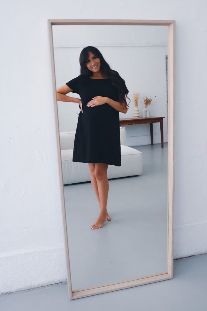 Cette robe accompagne les femmes tout au long du séjour à la maternité et en post-partum, pour continuer le peau à peau et l’allaitement. On peut également la porter avant accouchement puisqu’elle est confortable et élégante. Elle est faite d’un textile doux, en jersey bio certifié GOTS. Elle est proposée en couleur noire, dans les tailles S, M, L et XL.