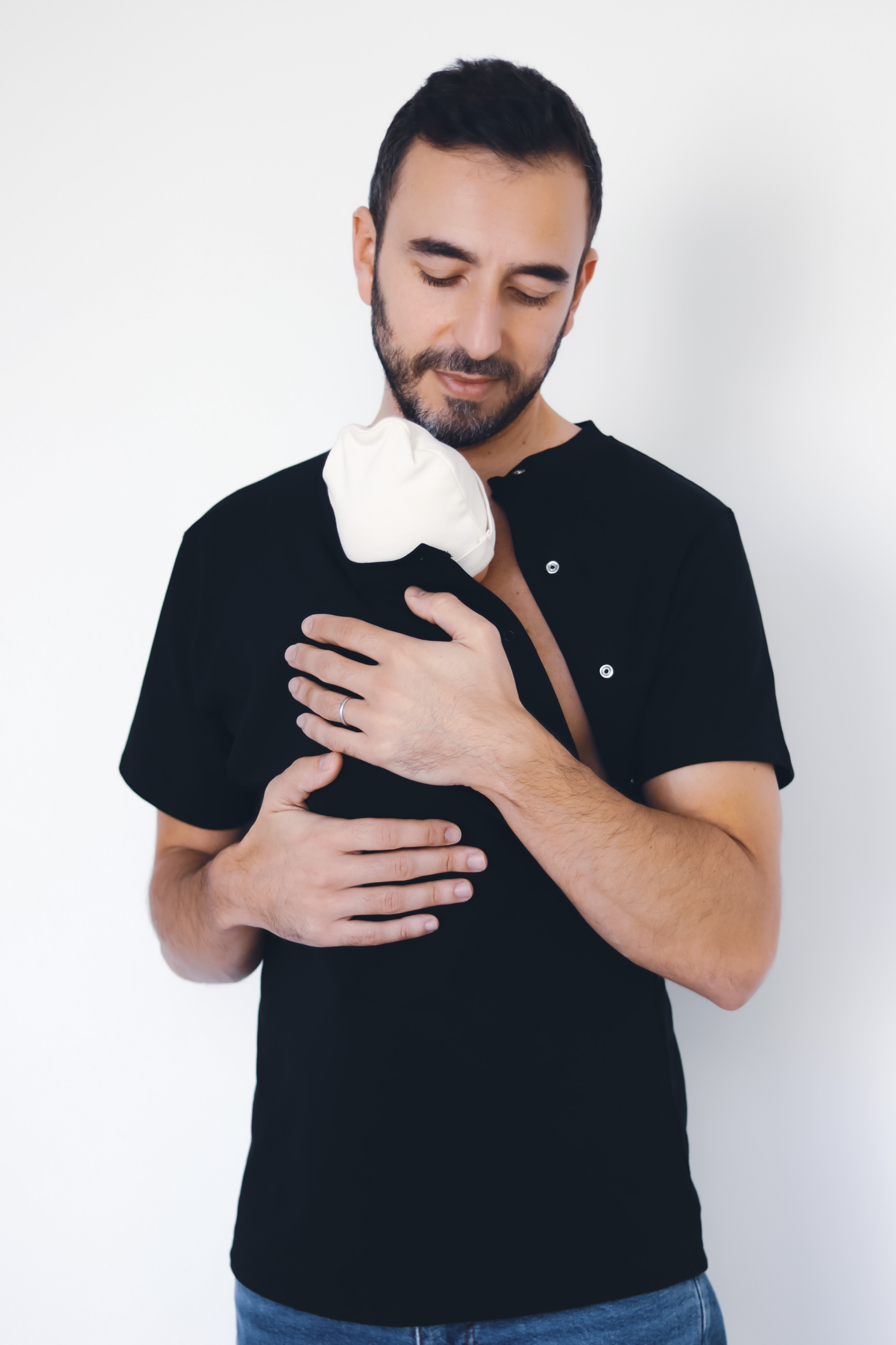 Ce t-shirt, destiné aussi bien aux hommes qu’aux femmes, a été créé pour réaliser aisément le peau à peau lors de la rencontre avec bébé et également après sa naissance. Il permet de partager ce moment de façon intime.