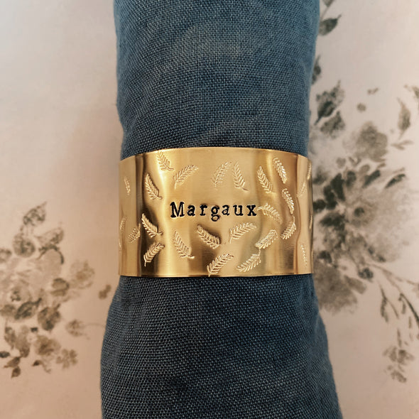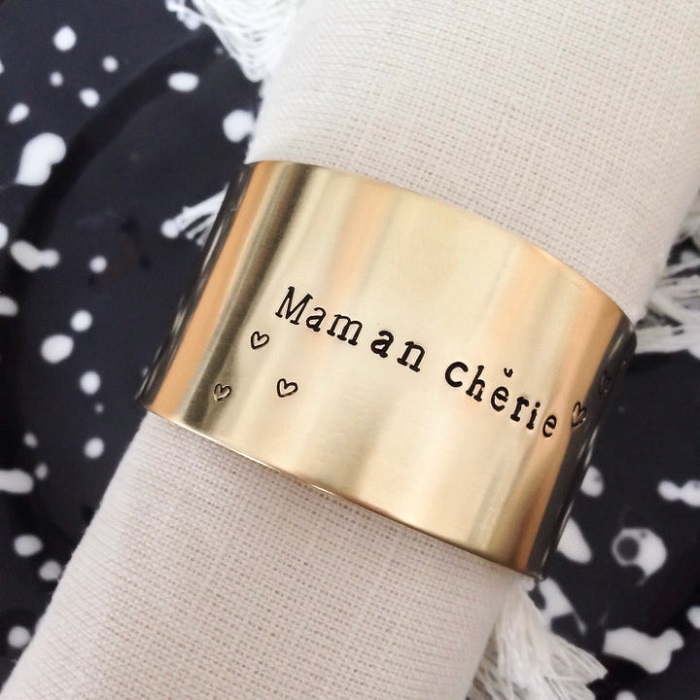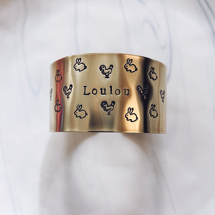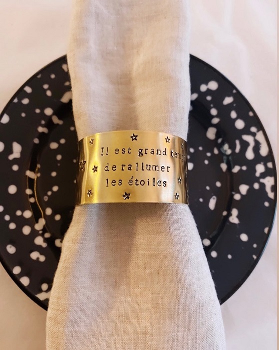 Parmi les jeunes talents qui montent, il y a notamment Un chat dans ma botte, la première marque française à proposer des ronds de serviette en laiton personnalisés, travaillés et poinçonnés à la main, lettre par lettre.