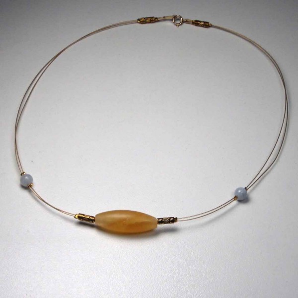 La Calcédoine bleue et Calcite orange – Collier complice de mon chiffre 3