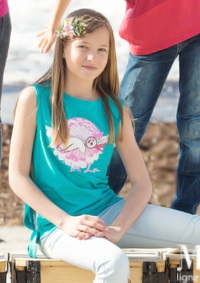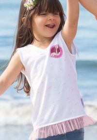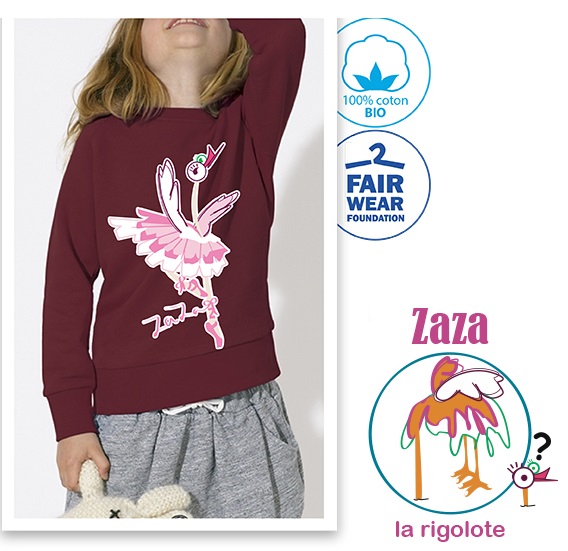 - Zaza l’autruche (gamme fille), ambassadrice de la protection de la terre : 2 débardeurs et 1 tee-shirt ;