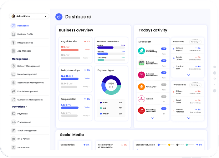 Le concept : un outil tout-en-un permettant aux restaurants et commerces d’intégrer tous leurs systèmes (caisse, livraison, RH, réseaux, stock, fournisseurs, marketing) sur une seule et unique plateforme et interface. Car oui, la plateforme fonctionne aussi bien dans l’univers de la restauration que dans celui du retail !