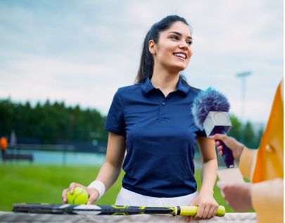 - Interviews de sportifs ou d’entraineurs après performance ou après matches, à l’occasion de compétitions internationales, Coupes du Monde, Coupes d’Europe, tournois de tennis majeurs, courses cyclistes et meetings d’athlétisme du top mondial, etc