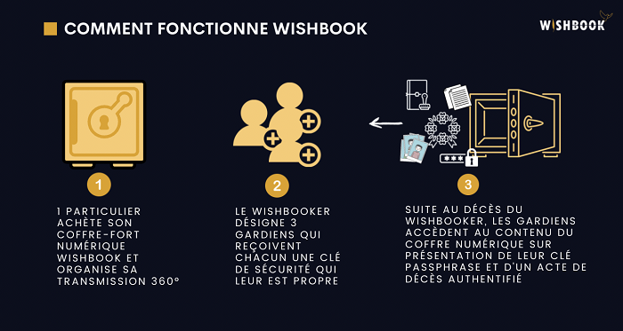 Dans ce contexte, Wishbook propose une alternative simple et accessible à tous, y compris aux seniors : des coffres-forts numériques destinés à ceux/celles qui souhaitent transmettre un héritage global à leurs proches et aux générations futures.