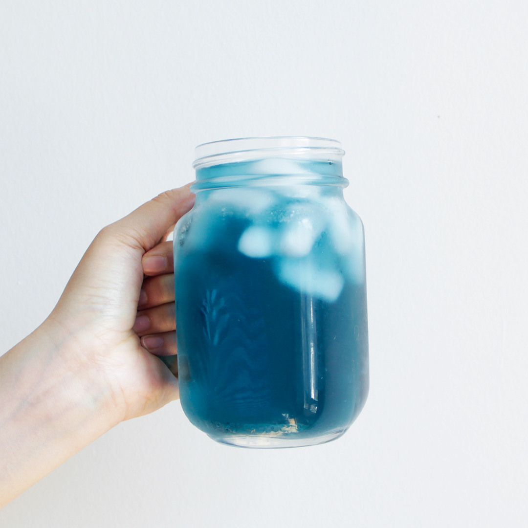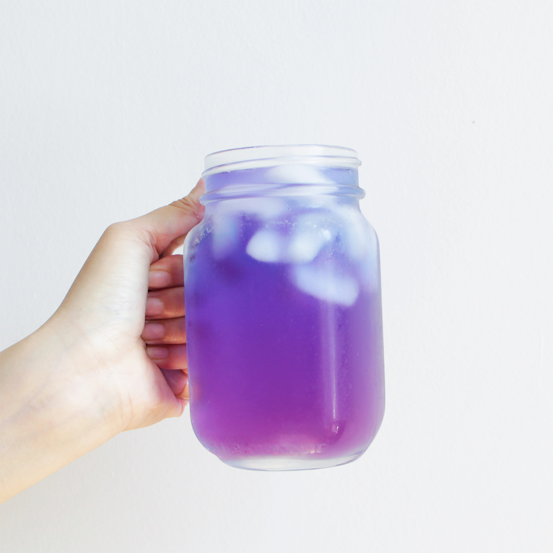 Les boissons préparées à partir des fleurs de pois papillon révèlent des couleurs chatoyantes pouvant aller du rose fuchsia au vert pastel en passant par le bleu et le violet.