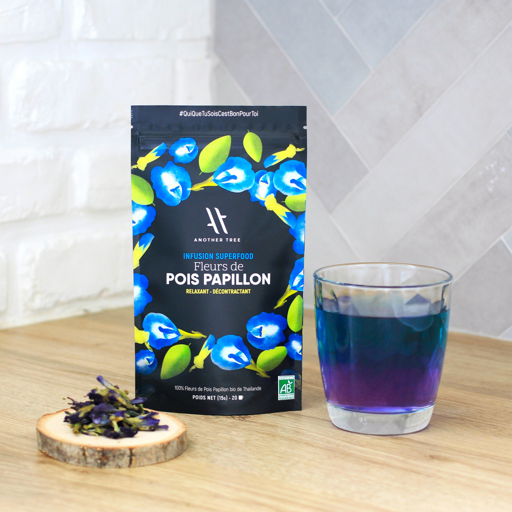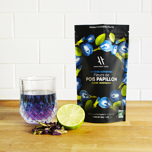 Another Tree met à l’honneur diverses plantes, notamment le Moringa et désormais le Pois Papillon (aussi appelé thé bleu) aux propriétés apaisantes et antistress.