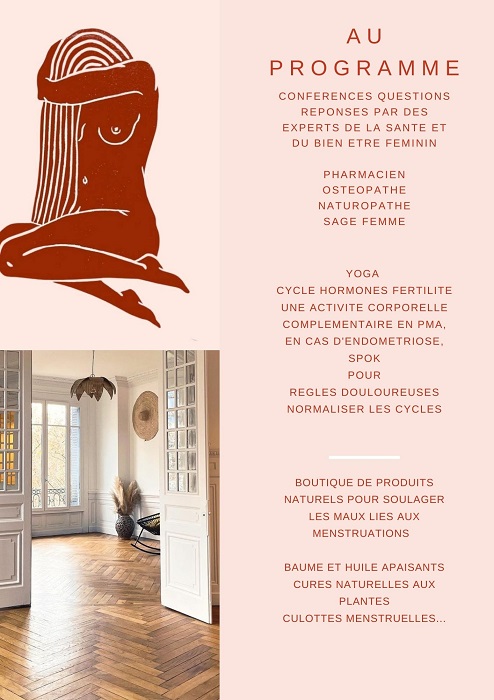 - Des Ateliers avec des experts santé et bien-être sur le cycle menstruel et l’équilibre hormonal ;