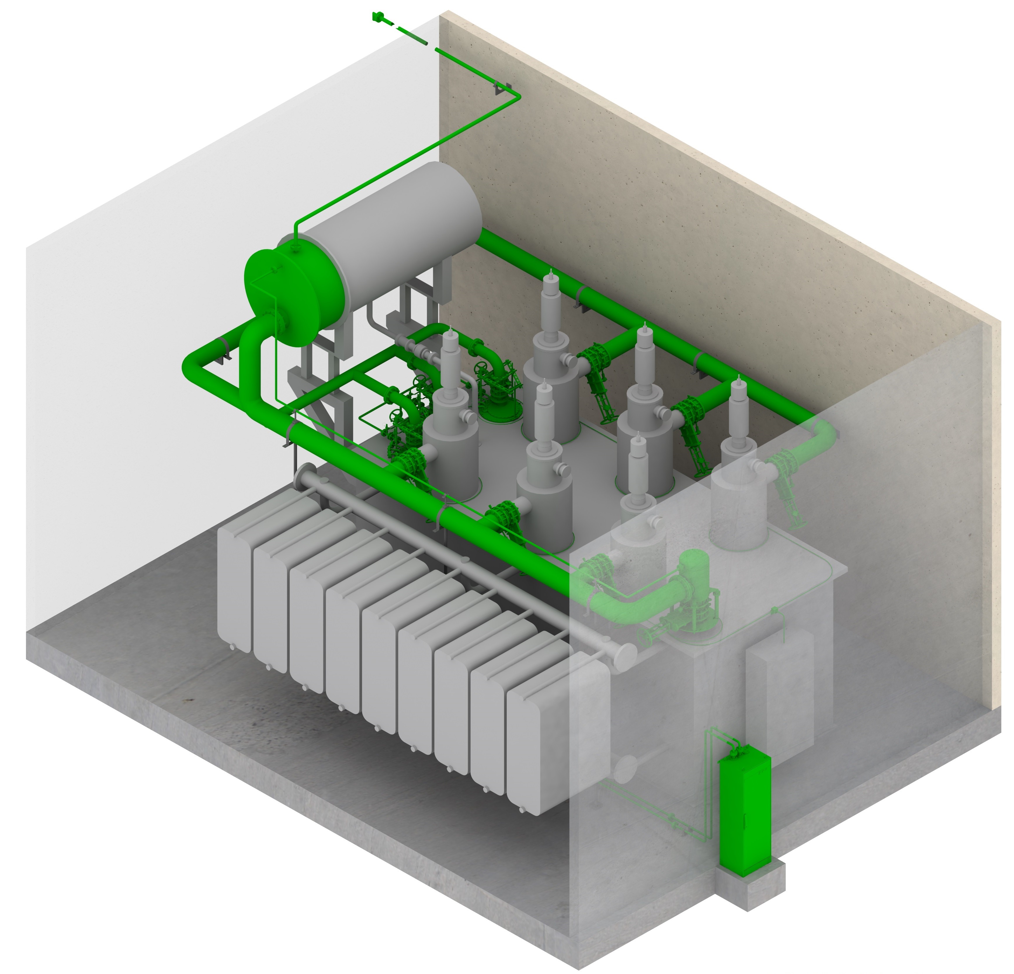 Conçu pour protéger la cuve du transformateur, le changeur de prise en charge, les traversées ainsi que les boîtes à huile et les traversées, le TP peut être installé sur tous les transformateurs à huile en service ou neufs de 0,1MVA jusqu’à 1000MVA et plus, les transformateurs de la génération, transmission et distribution, mais également en milieu offshore et en zone ATEX.