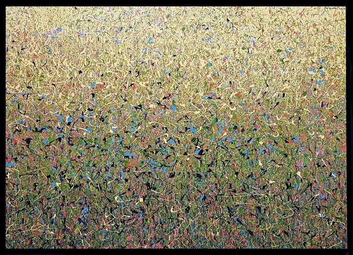 Souvent, Somsak peint également des paysages qui l’ont marqué – une plage de Bangkok, un champ battu par la mousson, la lisière d’une jungle – en y ajoutant une touche personnelle, propre à sa technique. À charge à l’observateur de percevoir – ou non – le paysage qui apparait en filigrane derrière les lignes et les points.