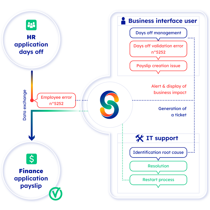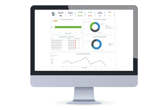 Toutes les opérations automatisées peuvent aussi être planifiées et suivies facilement, grâce à une API ouverte sur plus de 400 interfaces d’applications et à la possibilité de configurer des API sur mesure. 22_2 Surveiller : Gestion du succès et de l’échec de l’exécution de l’entreprise La surveillance et le pilotage de l’exécution des processus se font en temps réel, en toute sécurité (contrôle quotidien des activités numériques, surveillance centralisée & meilleure interopérabilité). En parallèle le temps de détection des incidents de processus est considérablement réduit. Process Sentry analyse aussi les causes profondes des problèmes qui peuvent survenir. shema-monitoring Collaborer : Faciliter la coopération entre tous les acteurs de l’organisation La vision de l’entreprise peut être standardisée, ce qui permet de réaliser une transformation numérique efficace. Les fonctionnalités du logiciel sont d’ailleurs compréhensibles par tous les utilisateurs (carte d’exécution de processus étape par étape, console d’événements d’échange dynamique de données, KPI et tableaux de bord des opérations métier). Il est aussi possible de cartographier et de mesurer l’impact de tous les échanges digitaux. computer computeur2