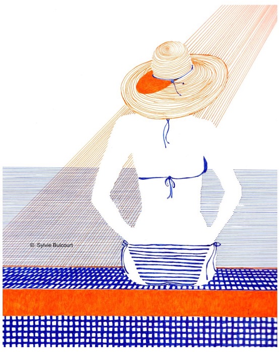 Sylvie explore différents sujets et techniques (fine liner, aquarelle, crayons de couleur…). Elle décline ses illustrations en différents thèmes : « Points de vue parisiens », « À la piscine », « Postures d’ados », « L’attente ».