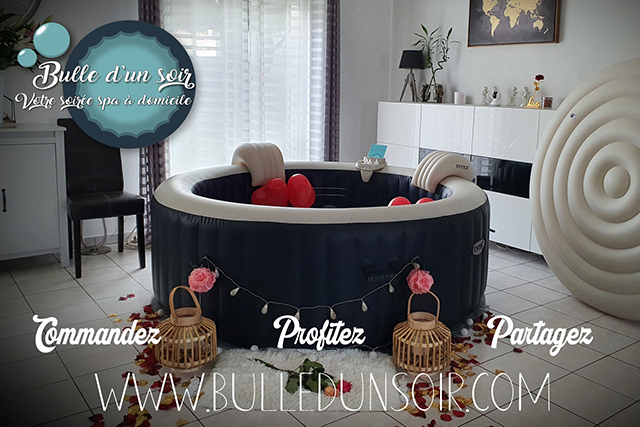 Bulle d’un Soir, c’est un réseau de professionnels formés à l’installation de bains à remous à domicile. Le groupe, fondé par Cindy Pinchemaille, propose aux particuliers, comme aux professionnels, la location et l’installation de spas gonflables à bulles à 38°C pour des durées variant de 24 à 48h. Pour les particuliers, il sera également possible de louer un spa à la semaine pendant la période estivale.