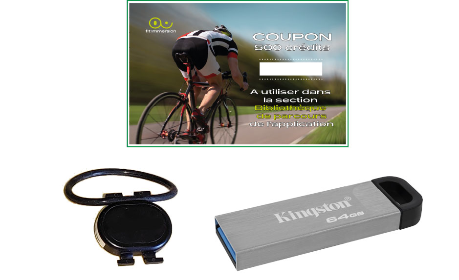 - Un coupon de 500 crédits permettant de télécharger 5 parcours supplémentaires.