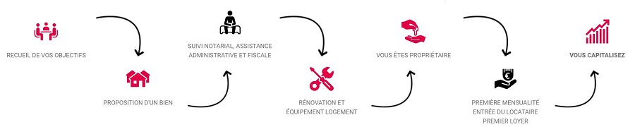 IRIA sélectionne des biens à haut potentiel et à forte rentabilité pour permettre à chacun.e de se constituer un patrimoine à partir de 50€/mois. Chaque dossier est suivi par un interlocuteur unique qui va gérer les différents intervenants (gestionnaire locatif, comptable, artisans, notaire…).
