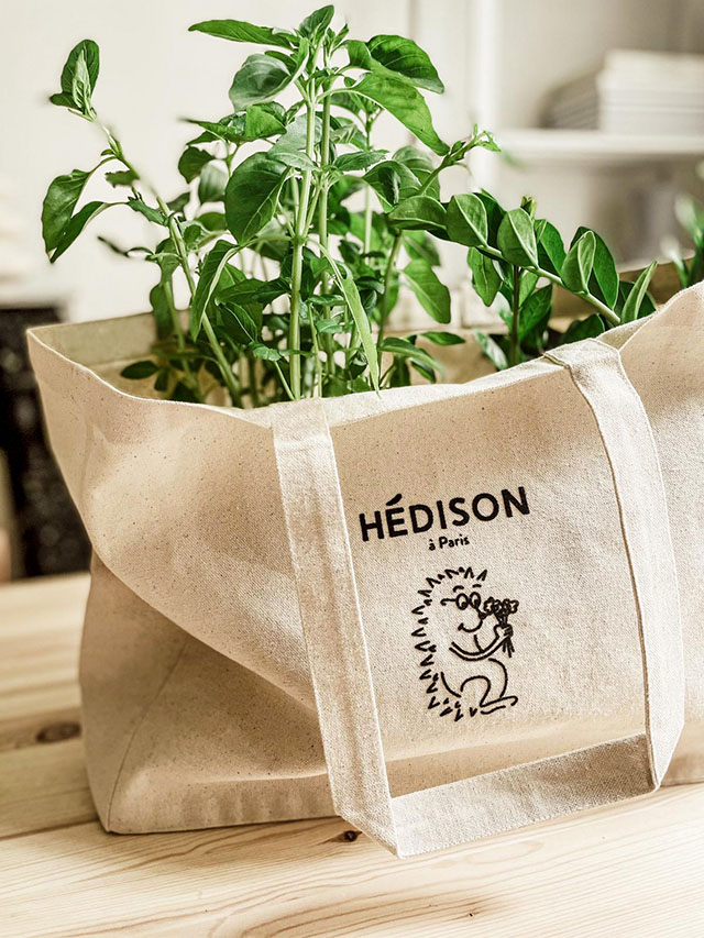 À travers sa marque Hédison, elle propose une collection de sacs réutilisables à l’infini et fabriqués à partir de matières naturelles ET recyclées, le moins impactant possible pour l’environnement.