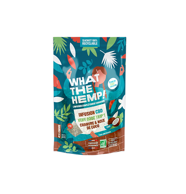What The Hemp a imaginé et conçu deux nouvelles infusions : Infusion CBD SOFT AND SWEET et Infusion CBD VERY GOOD TRIP à consommer pour se détendre. Les sachets fraîcheur de 24g renferment un mélange audacieux de plantes, dont le chanvre, pour apporter tous leurs bienfaits.