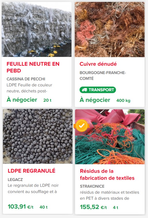 Sa marketplace offre un espace d’échange transparent et sans intermédiaires entre producteurs de déchets, recycleurs et acheteurs de matières.