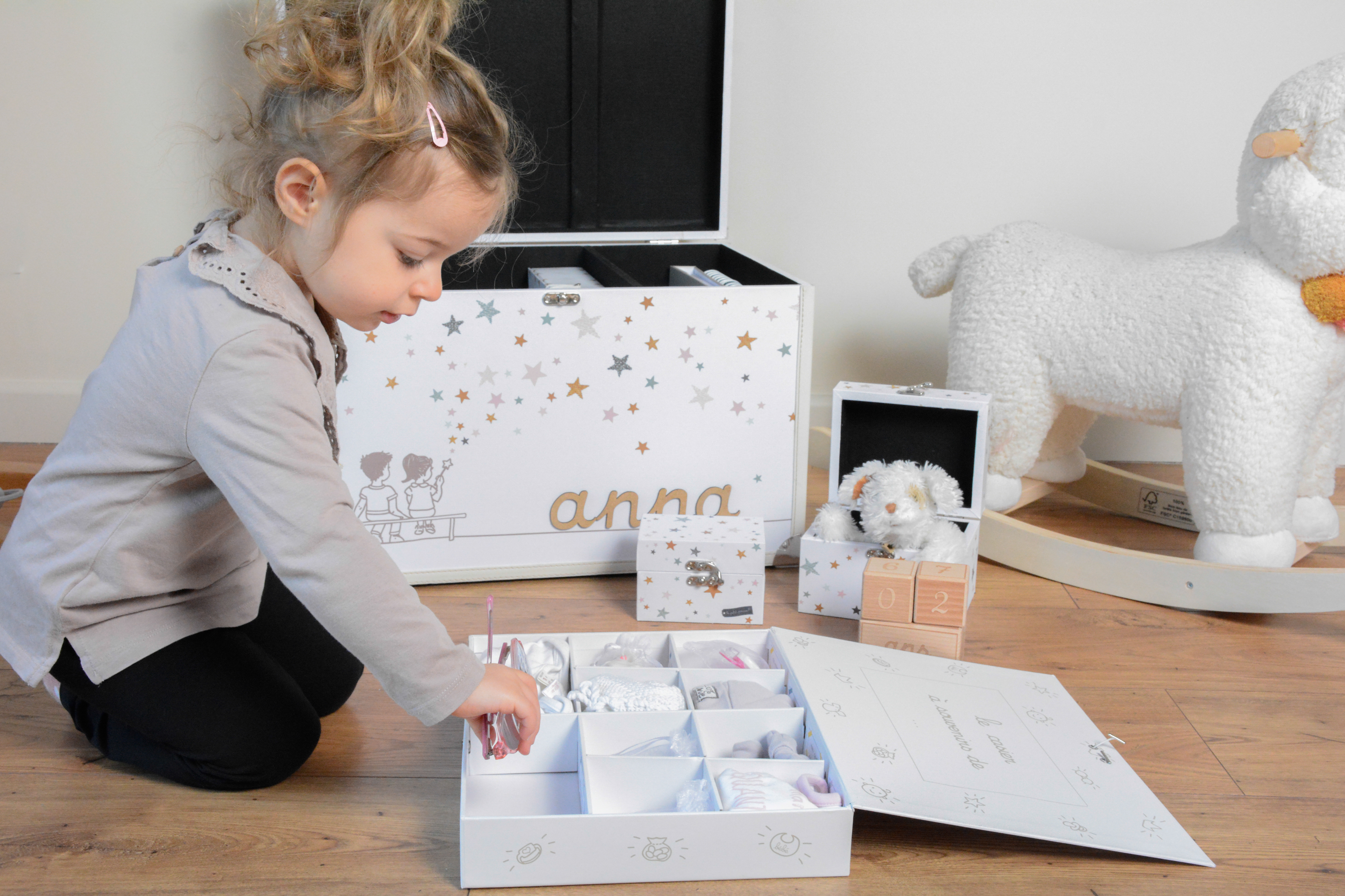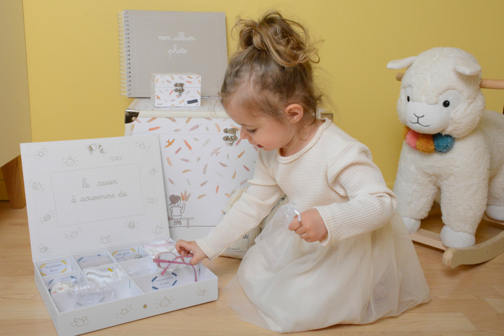 Quand on est parent d’un jeune enfant, on a envie de conserver une trace de toutes les « premières fois », des jolis moments et grandes étapes de sa vie, grâce aux objets qui les racontent : tenue de naissance, chaussons, dessins, photographies, médailles et cahiers…
