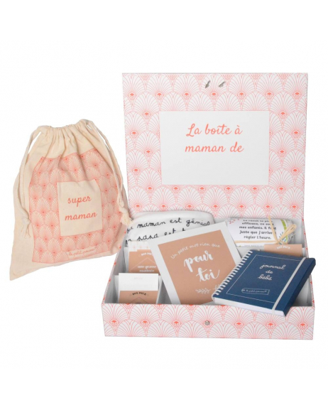 Après avoir lancé la boîte à papa fin 2020, Séverine et Emmanuelle ont conçu cette boite spécialement pour les futures ou jeunes mamans. Elle est livrée avec des cadeaux drôles et tendres qui célèbrent l’arrivée de bébé : un bavoir, six « bons pour… », un journal pour noter les souvenirs de bébé, une couche avec un message drôle, une carte pour lui écrire un joli mot et un pochon pour glisser un cadeau ou des souvenirs.