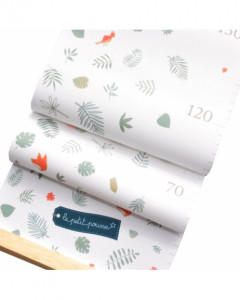 La toise en toile Robin, aux motifs jungle ou nature, ou l’un des 5 autres motifs créés par Le Petit Pousse, décore la chambre de bébé et permet de mesurer sa croissance dès qu’il commence à se tenir debout. Elle est facile à suspendre grâce à son système de baguette en bois et lien cuir. Une fois la croissance terminée, elle peut se conserver dans la bébéothèque de l’enfant.
