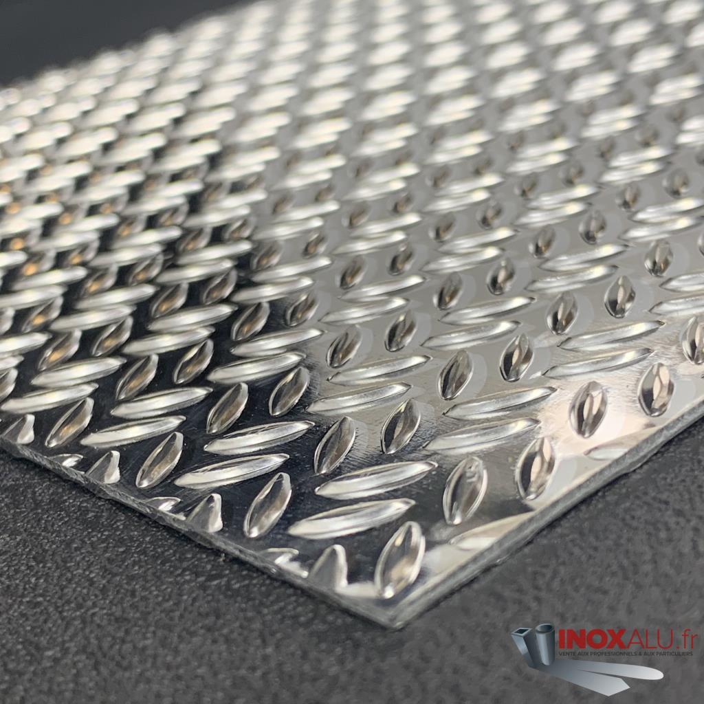 - Des tôles en aluminium grain de riz, anodisé, damier, noir, perforé ;