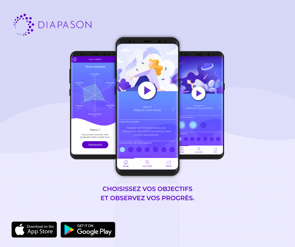 Le souci de soulager les personnes concernées a ainsi fait naître Diapason, une méthode de rééducation à portée de tous puisqu’en bénéficier suppose la simple possession d’un smartphone. Il s’agit, en somme, d’une thérapie numérique tirant profit des impulsions acoustiques pour soulager en période de crise.