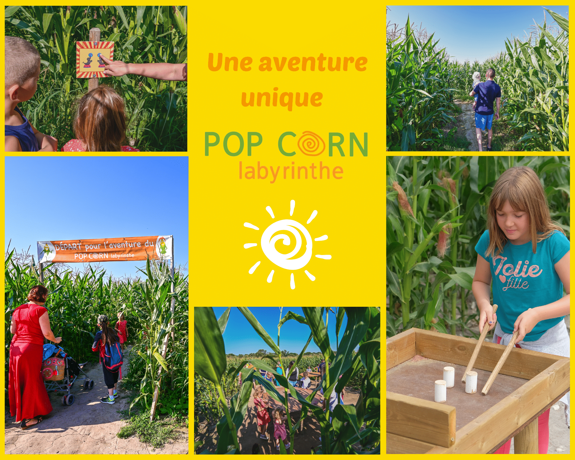 Pop Corn Labyrinthe est un labyrinthe géant, créé dans un champ de maïs de 4 hectares. Il a pour particularité de proposer des jeux et activités pour petits et grands, qui ponctuent un parcours d’1h30 environ.