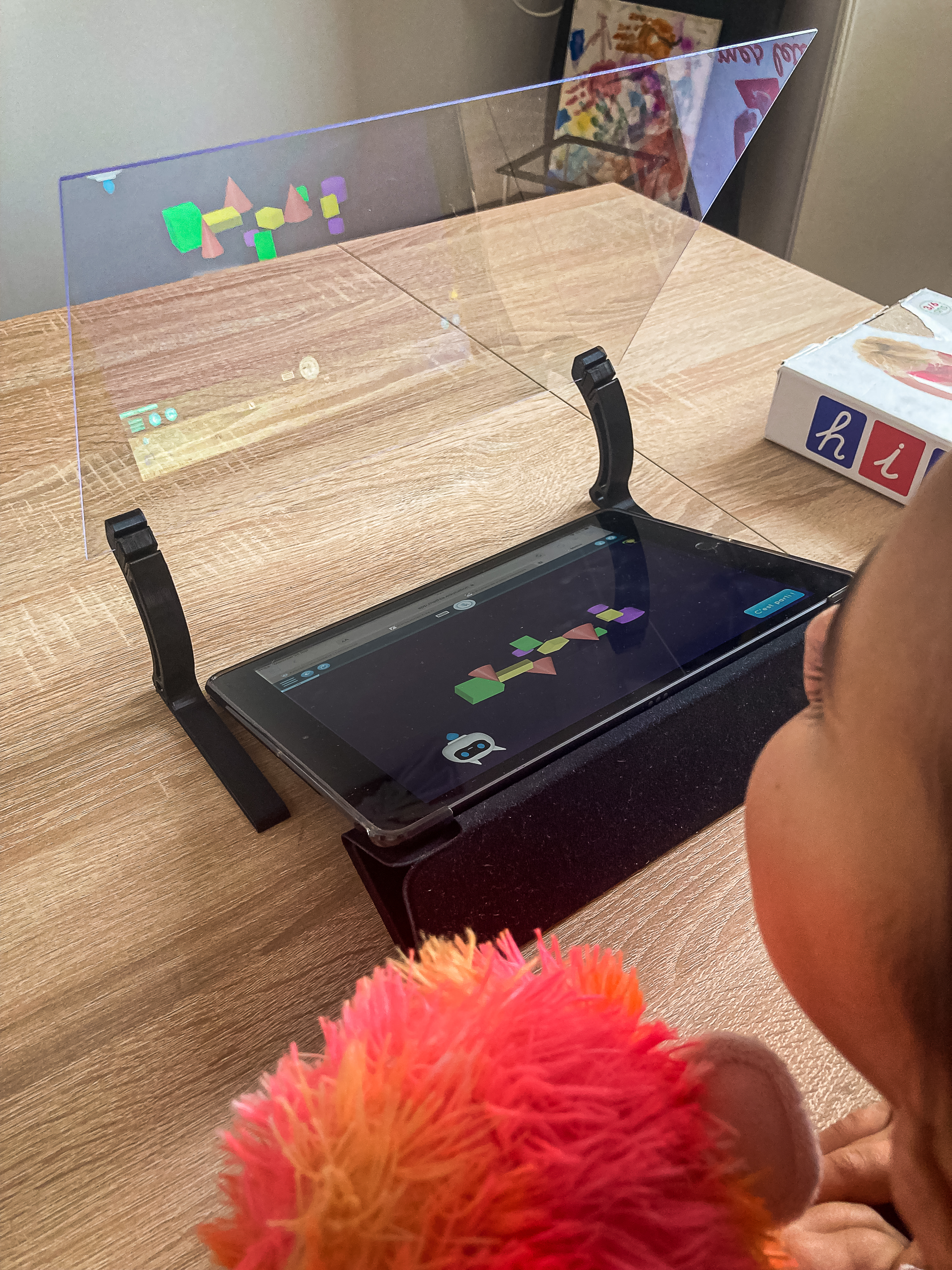 Il faut aussi faire mention du kit holographique. Les images projetées sur la vitre dynamisent l’apprentissage par leur caractère spectaculaire. Ce système de projection participe grandement de l’appréhension des notions mathématiques telles que les nombres ou les volumes.